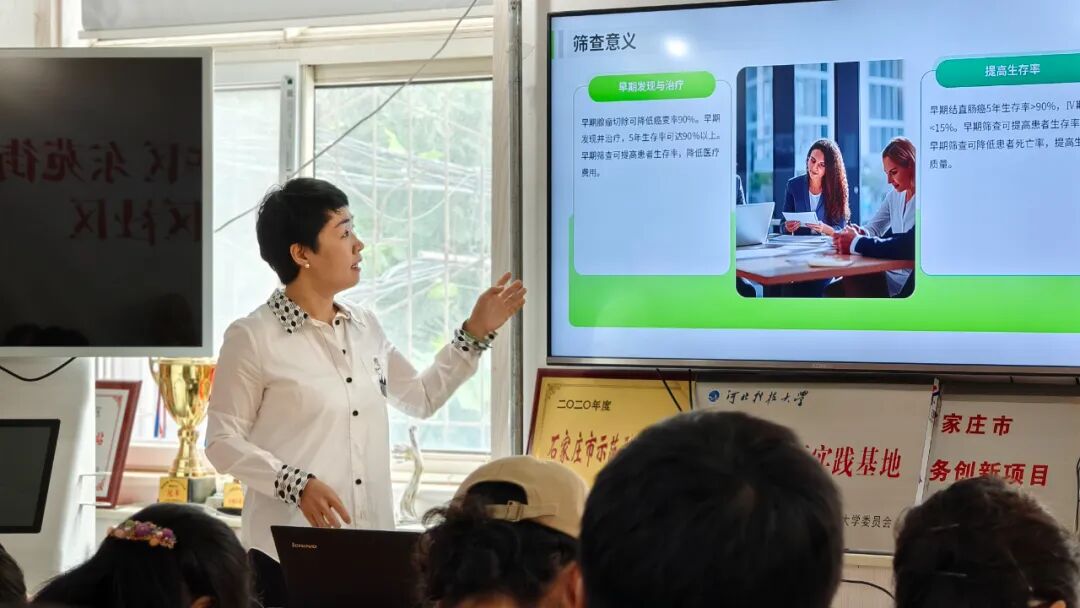 本次讲座特邀我院孔利霞副院长担任主讲人。孔院长以“结直肠肿瘤防治:从预防开始”为主题,为现场居民带来了一场内容丰富、实用易懂的健康科普。她从结直肠肿瘤的疾病特点、高发人群和治疗难点等基础知识入手,通过通俗的语言和贴近生活的实例,迅速让居民认识到该疾病的危害性与防治的重要性。