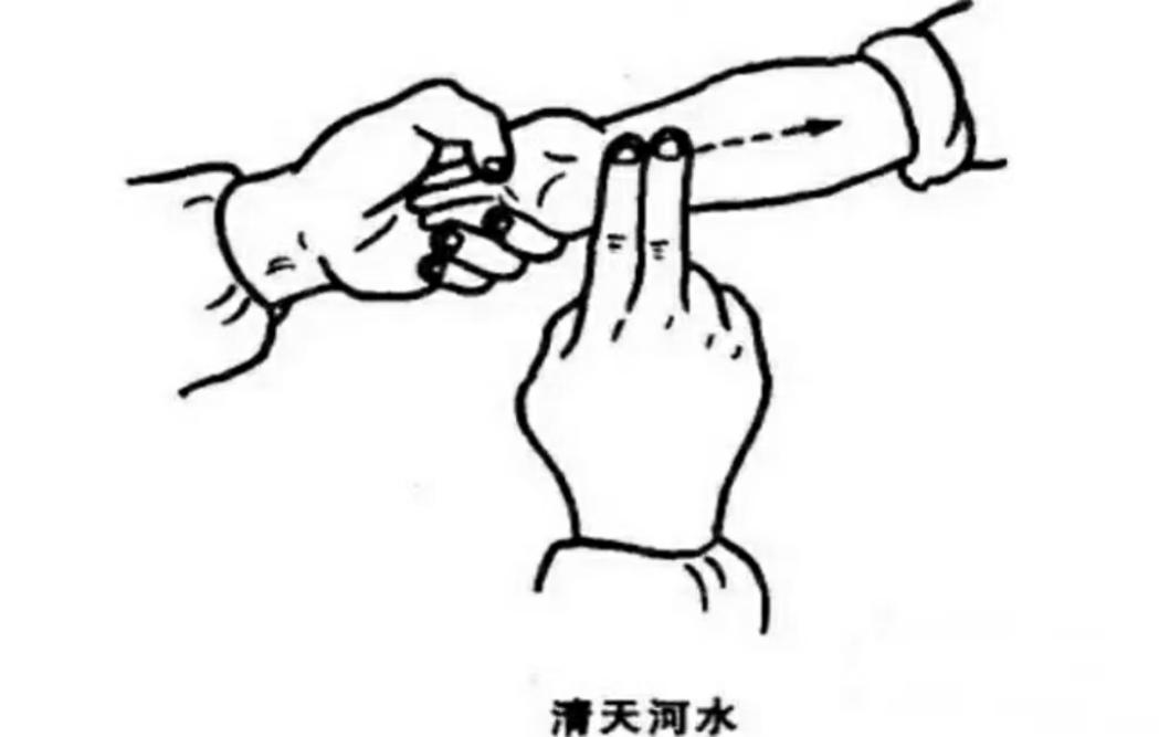 清天河水即从腕横纹推向肘横纹。