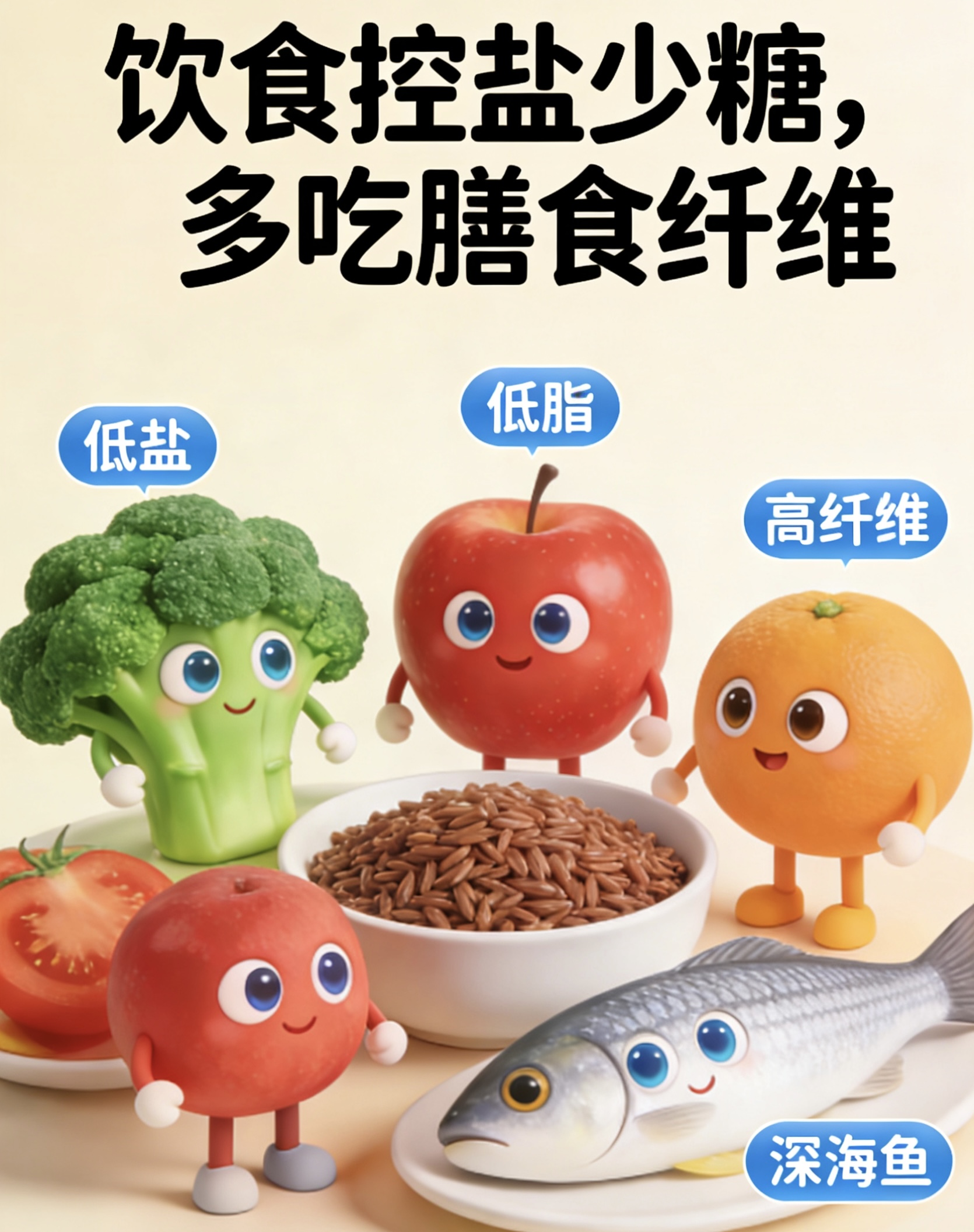 冬季饮食宜温、宜补,忌生冷、油腻,通过饮食调理气血,减少痰湿瘀滞。建议遵循“低盐、低脂、低糖、高纤维”原则:减少腌制品、加工肉、油炸食品的摄入,每日盐摄入量控制在5克以内;多吃富含膳食纤维的蔬菜(如芹菜、菠菜、西兰花)、水果(如苹果、橙子、猕猴桃)和全谷物(燕麦、糙米、玉米),帮助降低血液黏稠度;适量摄入优质蛋白,如鱼、虾、鸡胸肉、豆制品,每周吃2-3次深海鱼,补充Omega-3脂肪酸,保护血管内皮;多喝水,每日饮水量不少于1500毫升,晨起空腹喝一杯温水,可有效稀释血液,预防血栓。