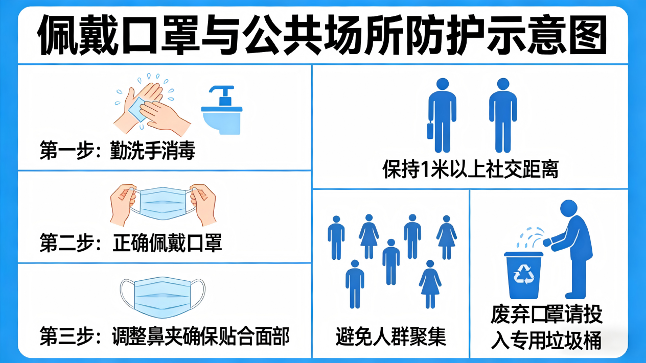 (2)前往人群密集场所或就医时,全程规范佩戴医用外科口罩或以上级别口罩;